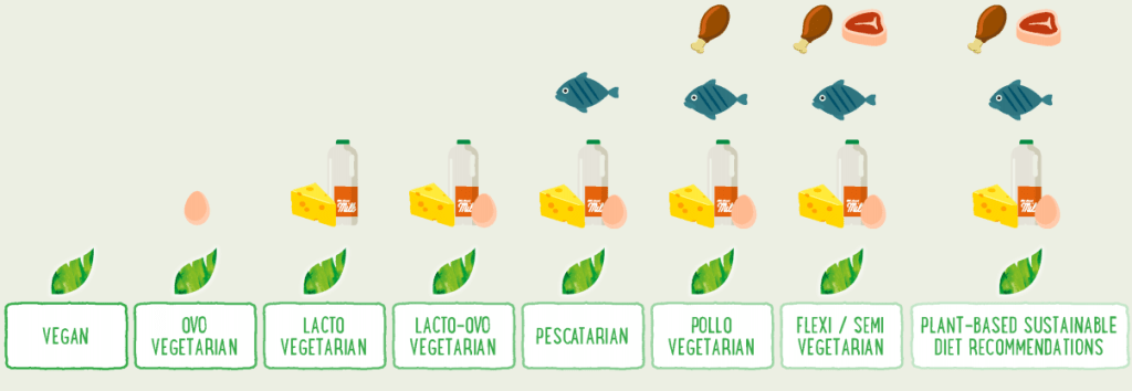 Binnen onze maatschappij, maar ook wereldwijd winnen plantaardig georiënteerde eetgewoonten aan populariteit. Mensen kiezen hier vaak bewust voor én iedereen heeft hier zijn redenen voor. Maar wat is nu het verschil tussen alle verschillende vormen van plantaardig georiënteerde eetgewoonten? Awel.. We kunnen ten eerste al twee grote groepen onderscheiden namelijk vegetarisme en veganisme. Een vegetariër is een persoon die ervoor kiest om geen vlees, vis, gevogelte en soms andere dierlijke producten te consumeren. Echter betekent het begrip “vegetarisch” niet voor iedereen hetzelfde. Zo kunnen er binnen het vegetarisme zelfs vier grote groepen onderscheiden worden, namelijk: