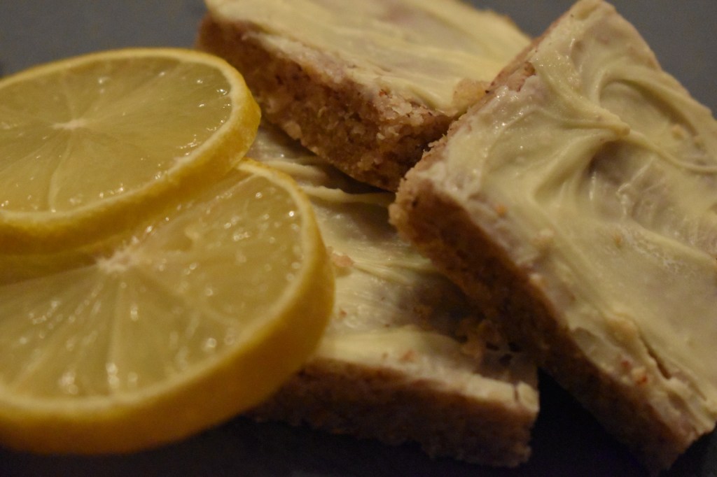 Smelt de witte chocolade en verdeel deze over de bovenkant. Werk eventueel af met nog wat extra zeste van citroen. 🍋